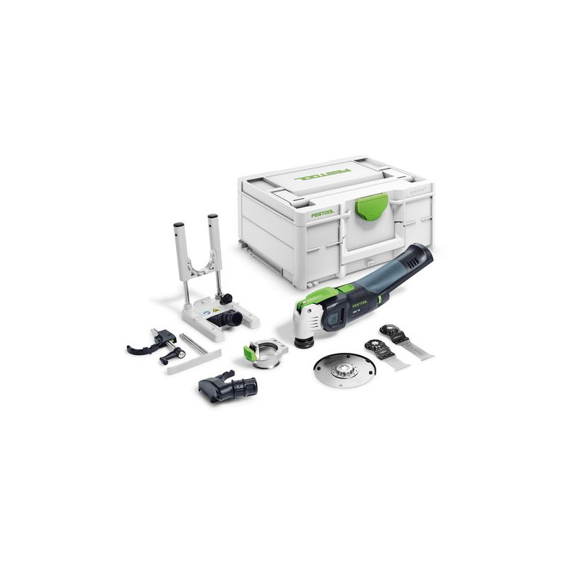 odsávací zařízení OSC-AV, vodicí stojánek OSC-AH, hloubkový doraz OSC-TA, adaptér OSC-A, univerzální pilový nástroj USB 78/32/Bi/OSC, univerzální pilový nástroj USB 50/35/Bi/OSC, pilový nástroj na dřevo HSB 100/Bi/OSC, Systainer SYS3 M 187