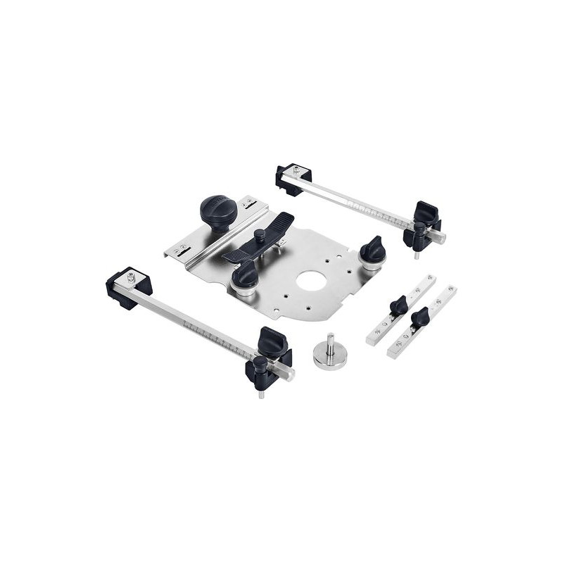vodicí deska, středicí trn, 2 boční dorazy s dorazovým jezdcem, 2 x podélný doraz