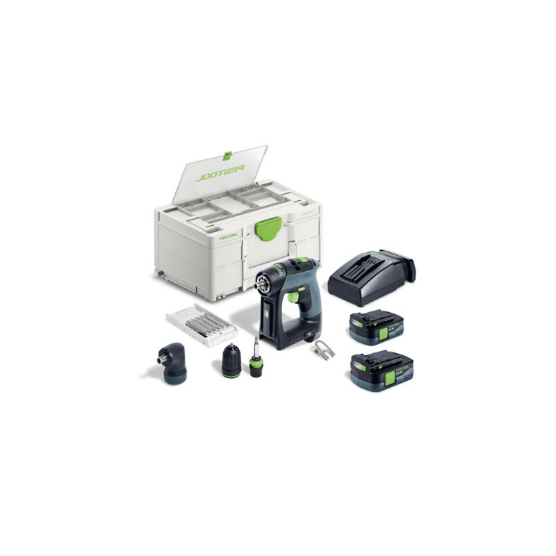 2 x akumulátor BP 12 Li 2,5 C, rychlonabíječka TCL 6, magnetický držák bitů CENTROTEC BH 60 CE-Imp, univerzální držák bitových nástavců WH-CE CENTROTEC, úhlový nástavec AN-XS, rychloupínací sklíčidlo FastFix 10 mm, kazeta s bity BKS SYS3 D5 PZ TX 100 CE, bit PZ 2, spona na opasek, Systainer SYS3 DF M 187
