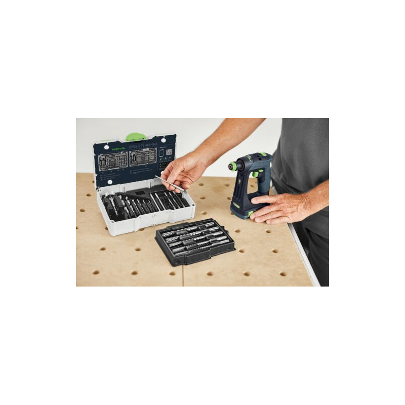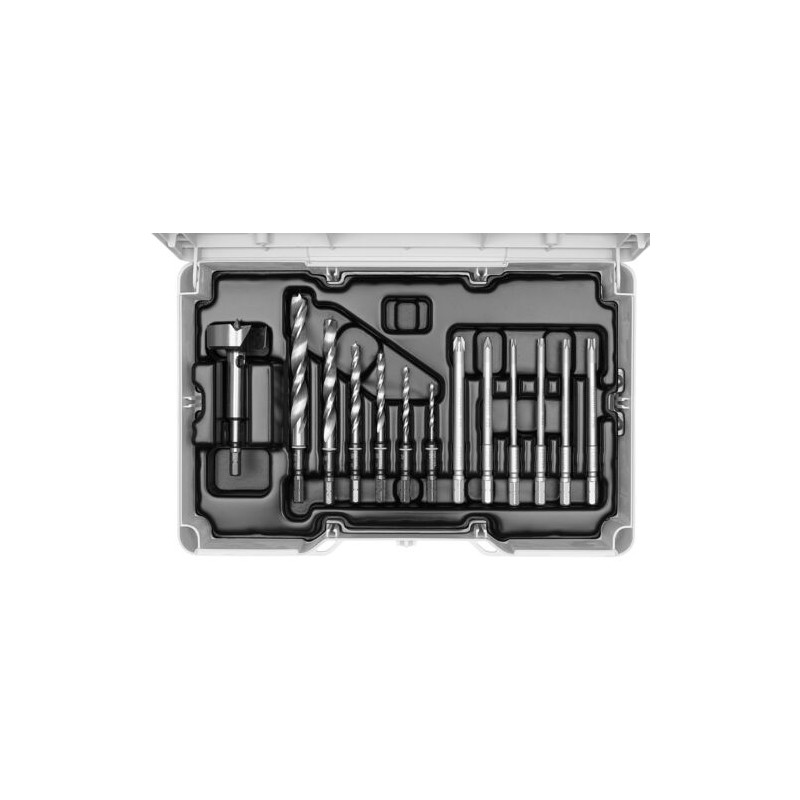 vrták do kladiv SDS-Plus D 5 × 100 mm (Ø 5 mm; délka spirály 100 mm), vrták do kladiv SDS-Plus D 6 × 100 mm (Ø 6 mm; délka spirály 100 mm), vrták do kladiv SDS-Plus D 8 × 100 mm (Ø 8 mm; délka spirály 100 mm), vrták do kladiv SDS-Plus D 10 × 100 mm (Ø 10 mm; délka spirály 100 mm), vrták do kladiv SDS-Plus D 12 × 100 mm (Ø 12 mm; délka spirály 100 mm), bit PZ 2-100 CE (délka 100 mm), bit PZ 3-100 CE (délka 100 mm), bit TX 15-100 CE (délka 100 mm), bit TX 20-100 CE (délka 100 mm), bit TX 25-100 CE (délka 100 mm), bit TX 30-100 CE (délka 100 mm), Forstnerovy vrtáky FB D 35 CE (Ø 35 mm), spirálový vrták na dřevo D 3 CE/W (Ø 3 mm), spirálový vrták na dřevo D 4 CE/W (Ø 4 mm), spirálový vrták na dřevo D 5 CE/W (Ø 5 mm), spirálový vrták na dřevo D 6 CE/W (Ø 6 mm), spirálový vrták na dřevo D 8 CE/W (Ø 8 mm), spirálový vrták na dřevo D 10 CE/W (Ø 10 mm), Systainer³ SYS3 S 76